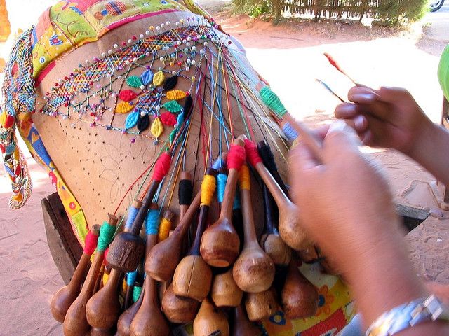 Y al otro lado de esa línea imaginaria, como excepción que confirma la regla, las podemos encontrar también en Portugal y en Brasil, a donde las llevaron los portugueses; en alguna zona minoritaria de España, concretamente en Sevilla (Andalucía), para realizar el encaje numérico sevillano y en Hinojosa (Extremadura) para trabajar el encaje con ese nombre y que es el hermano pequeño del primero; y en Inglaterra, tan anchos que casi resultan planos, aunque actualmente ya solo pueden verse en los museos, porque hoy utilizan almohadas planas para elaborar el encaje de Bucks.
