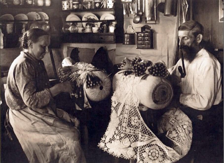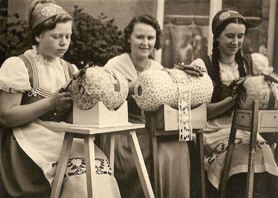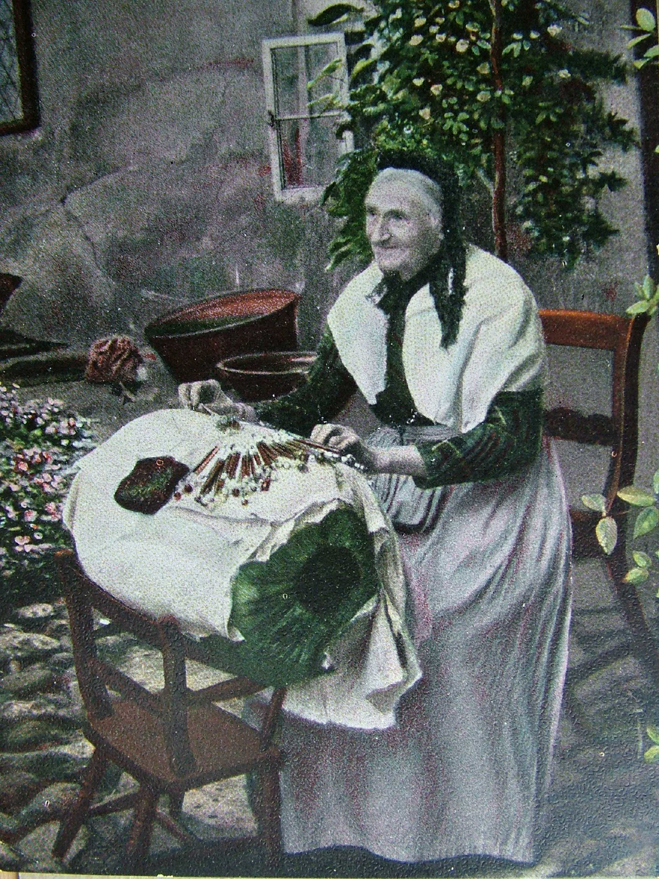 En la búsqueda de información para esta pequeña entrada me he encontrado con algunas fotografías antiguas que como siempre, me gustaría compartir, son tanto de encajeras, cómo de almohadas de otros tiempos. Algunos de estos modelos, siguen siendo plenamente actuales como sus soportes. Otros, como ocurre con los ingleses, yo diría que están prácticamente en desuso.