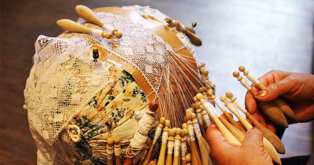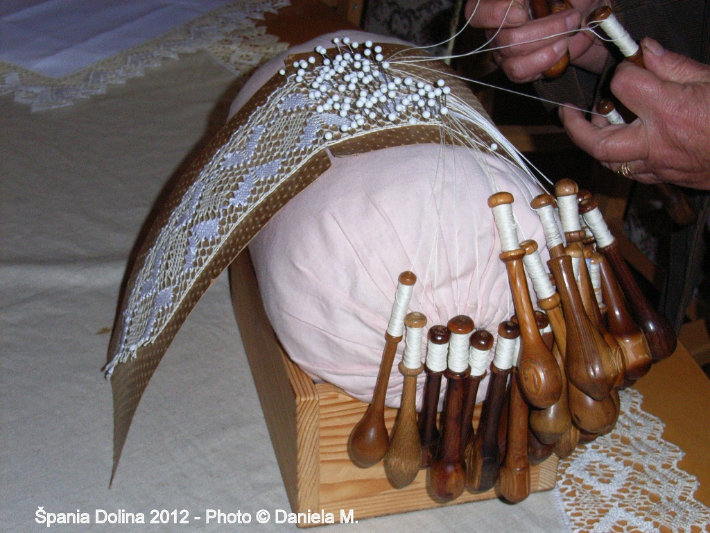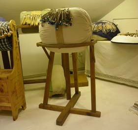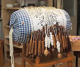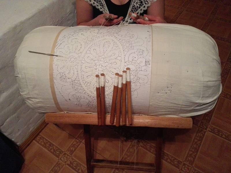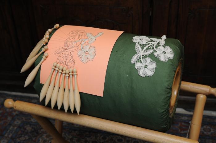 Es fascinante que existe una especie de línea divisoria que recorre toda Europa de norte a sur, partiendo por ejemplo a Alemania en dos. En el oeste de esta línea, el encaje de bolillos se elabora casi exclusivamente en el cojín plano, mientras que, en el este, se usa casi exclusivamente el cojín cilíndrico o de rulo.