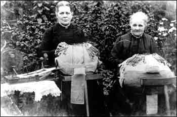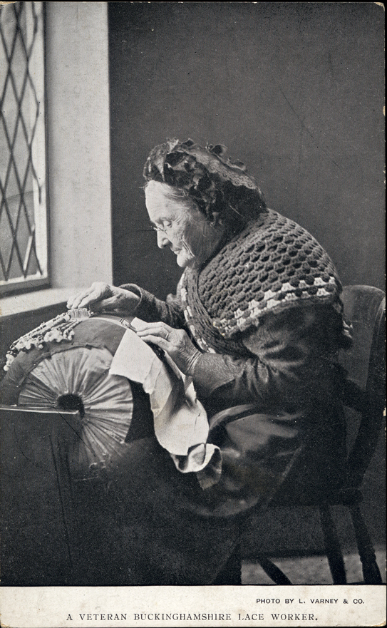 Encajeras de Cranfield (Bedfordshire, Inglaterra) Se puede apreciar que los rulos son tan enormes que practicamente se convierten en almohadas cuadradas, casi planas en su superficie superior. En la fotografía siguiente se advierte claramente la evolución