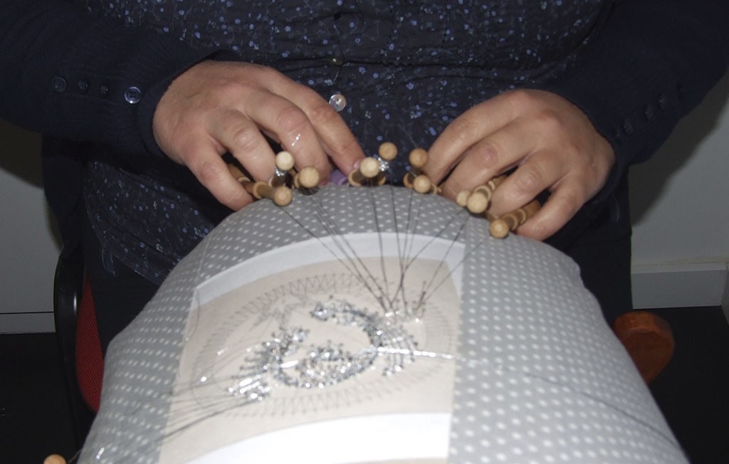 En general, como se observa en la foto anterior, se trabaja en ellos con las manos hacia arriba y se utiliza el método abierto… pero una vez más, hay excepciones como se puede ver en la siguiente imagen y en este enlace Rendas da Ceu . Como curiosidad diré, que yo trabajo con las manos hacía arriba, pero con el método cerrado, siempre dejo la vuelta dada. Hay combinaciones para todos los gustos y siempre que el resultado sea bueno y la encajera esté cómoda, vale todo, o casi.