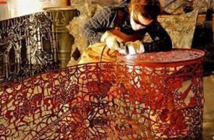 ¿Chantilly? ¿Cantú? ¿Guipur? ¿Torchón? ¡No! Chatarra de hierro y acero en vez de hilo y un cortador de plasma o
